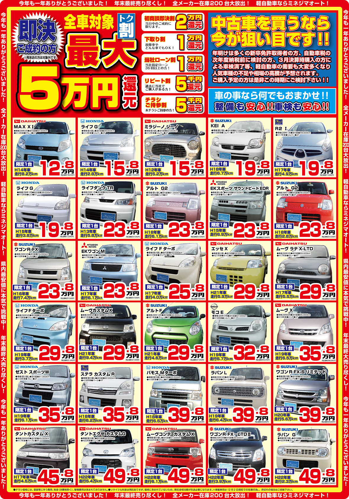 ミネジマオート今年最後の大感謝セール!