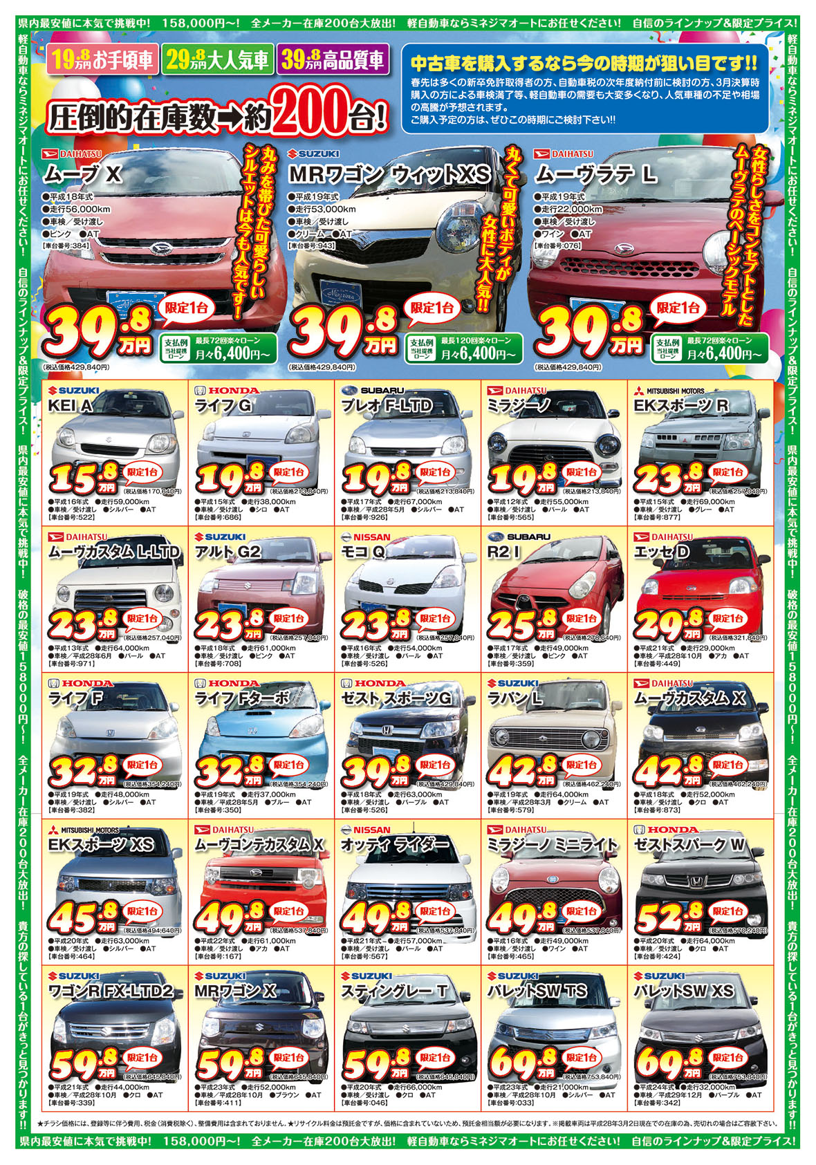 今春、就職される方、進学される方も必見!今月の「ミネジマオート」は超お買い得!!