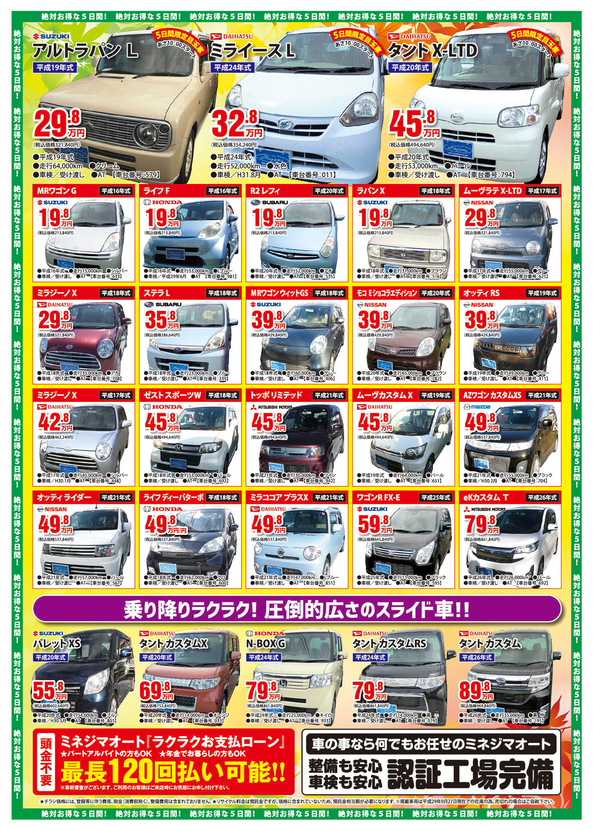 2017/09/30安い軽自動車をお探しなら、絶対お得な5日間!