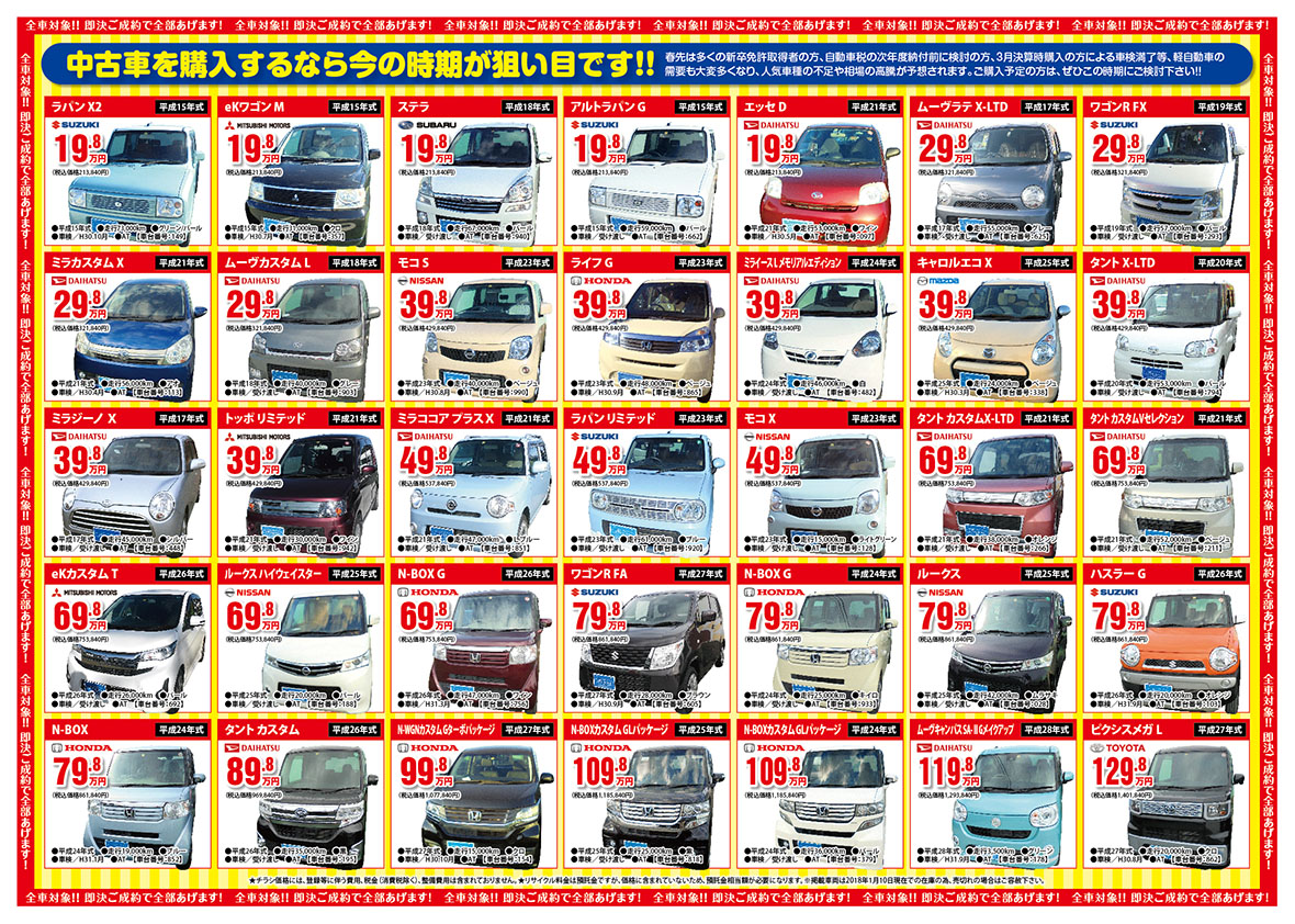 全車対象『即決ご成約で先着10名様!』全部あげます