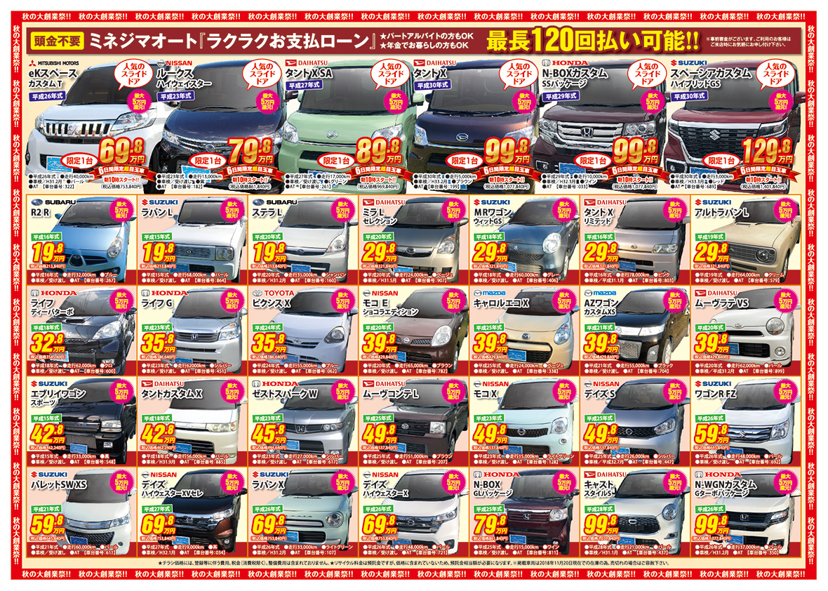201811/23(金)・24(土)・25(日)・26(月)・27(火)・28(水)6日間朝10時オープン!!~激安軽自動車~地域最安値に挑戦中!※先着10名様※ ⇒⇒⇒ 最大5万円還元!